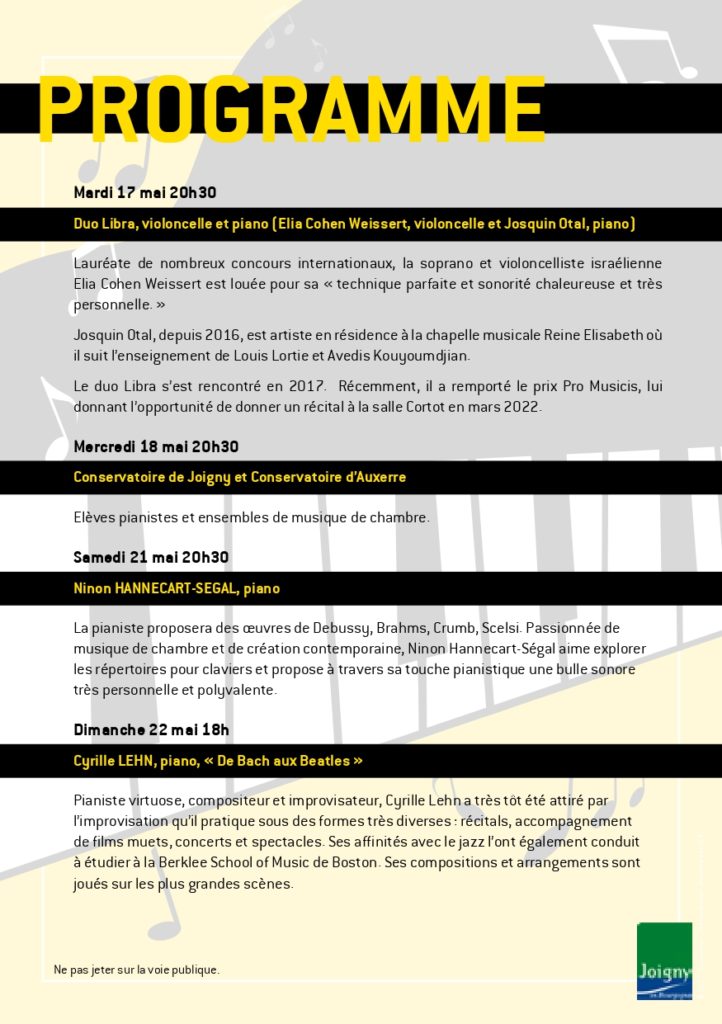 03 86 62 24 14 conservatoire@ville-joigny.frPrésentation du piano à travers le parcours d'une petite fille, dans le cadre des "pianos en nocturne"