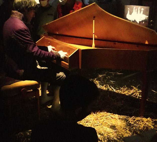 Pour les ateliers musique, les musiciens pourront faire essayer les instruments par petits groupes, sensibiliser au contexte historique baroque (iconographie, peintures), et montrer les bases de travail de combinaisons entre texte et musique : choix des pièces, superpositions, enchaînements, contrastes, etc.