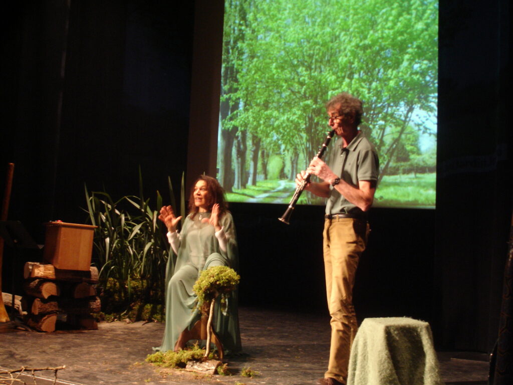 Spectacle musical pour présenter différents instruments de musique aux élèves des 10 écoles de Joigny sur le thème de la forêt